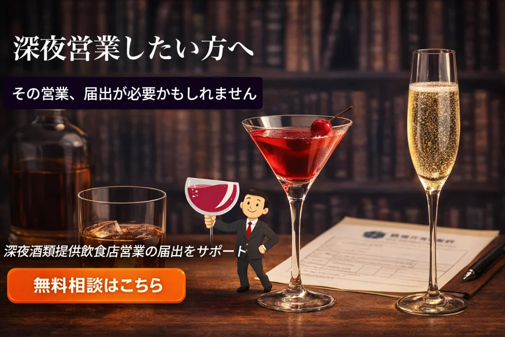 深夜酒類提供飲食店営業届出のサポートはお任せください